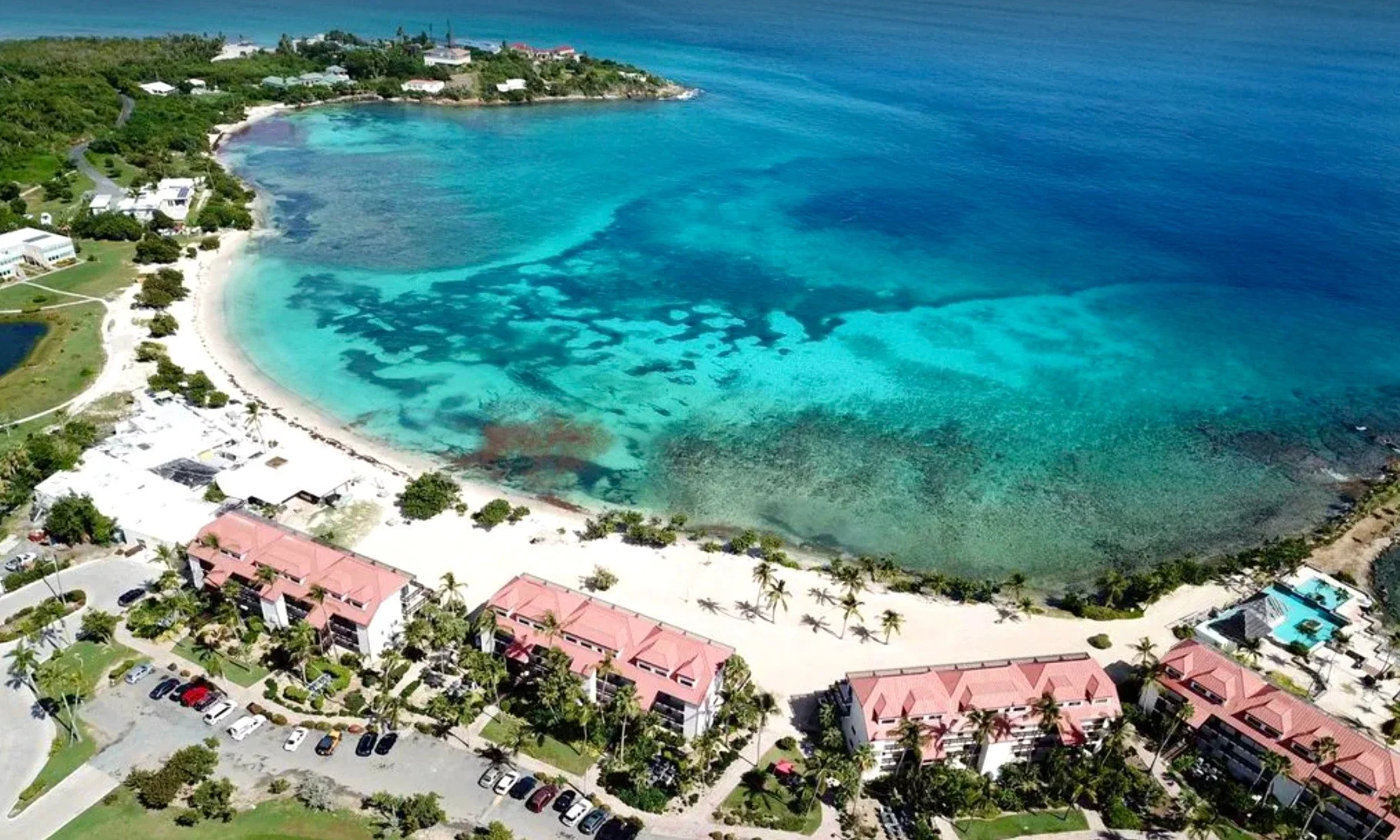The wedding party and most family will be staying adjacent to the ceremony site on Sapphire Beach. Composed mostly of individually-owned condos vs. traditional hotels, this will be the most convenient mid-range option for many people, and grouping up in larger condos is possible.